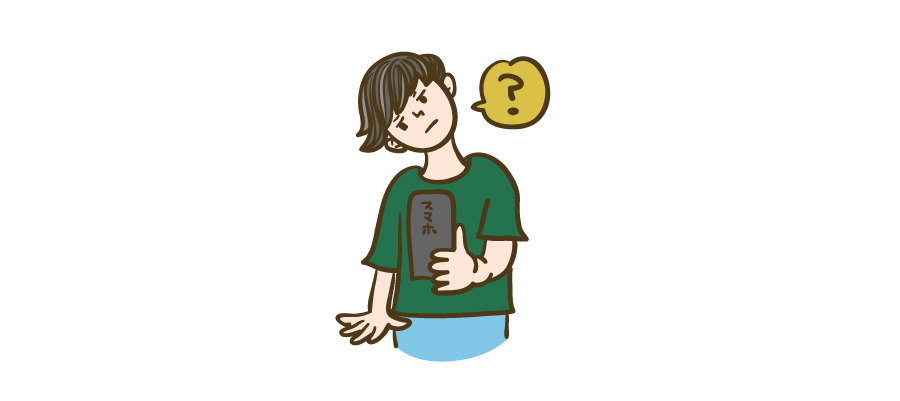 スマホを見て疑問に思う人(男性)のイラス