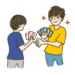 駅伝で襷を繋ぐ人(男性)のイラスト、駅伝