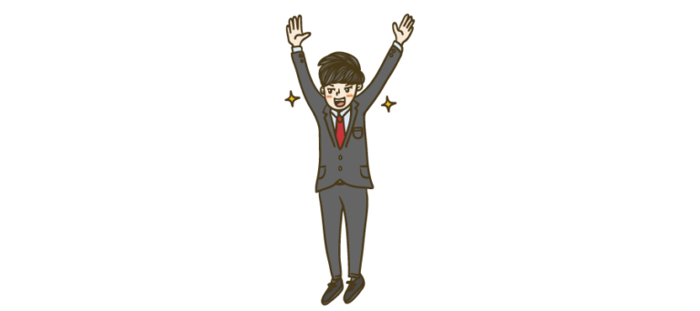 喜ぶサラリーマンのイラスト素材です。下の … 続きを読む 喜ぶサラリーマン