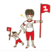 頭の上にモルモットを乗せた男の子のイラスト